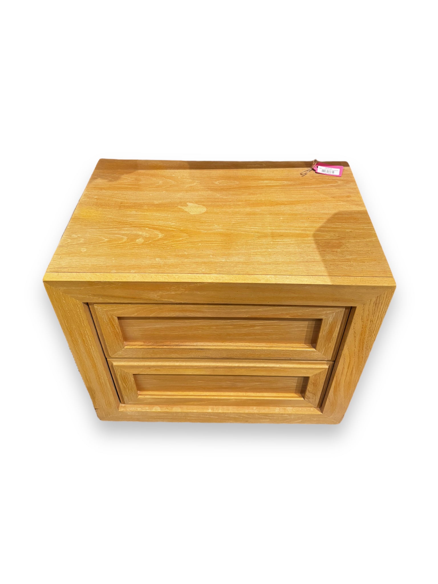 Description: A timeless piece from Thomasville, this two-drawer nightstand combines clean lines with classic craftsmanship. The light wood finish highlights its elegant grain, while the beveled drawer fronts add depth and dimension. Perfect for modern or traditional interiors alike, it offers ample storage without sacrificing style. Two available — sold separately — making it easy to complete your bedroom set or use individually as versatile accent tables. Preloved and in beautiful condition.