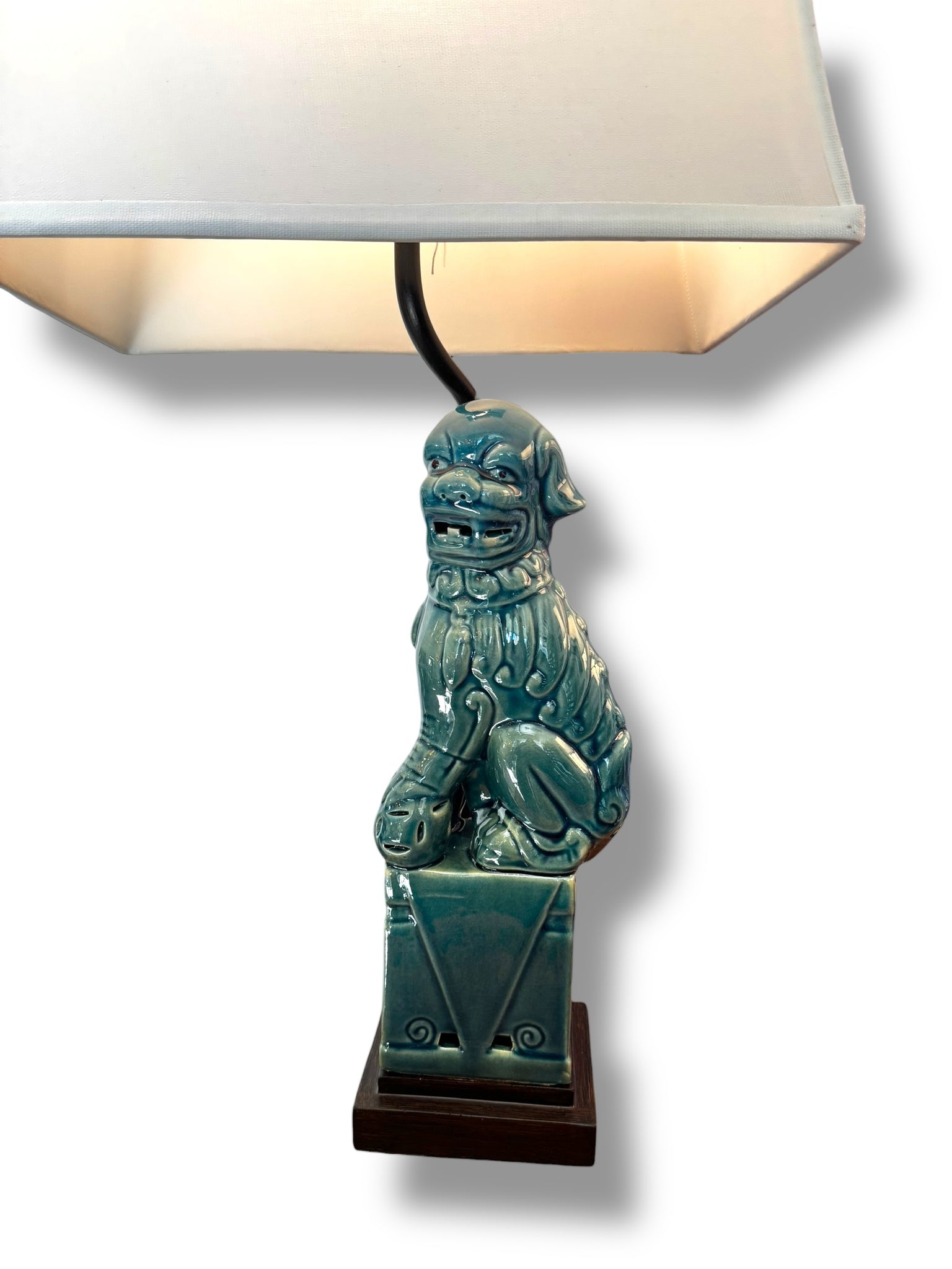 Description: Bold, timeless, and full of character—this stunning pair of Safavieh Foo Dog lamps makes an unforgettable statement. Featuring sculptural Foo Dog bases with classic Asian-inspired detailing, these lamps blend traditional symbolism with glamorous design for a look that feels both curated and powerful. These came new in original packaging and are in excellent, unused condition. Perfect for flanking a console, nightstands, or a sofa, they instantly elevate any room with a designer touch.